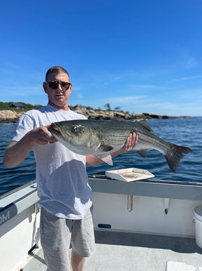 NIGHT BITE — Discover the bite after dark aboard our 28' Contender Center Console vessel fully equipped to hunt trophy-sized striped bass. As the sun sets over the scenic Gloucester coastline we'll head out and use live bait to entice the striped bass as larger concentrations of fish congregate closer to shore during these hours. Trip leaves at 6:30pm.